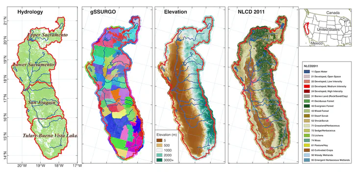 - Develop a hydrologic modeling system for both the Sacramento watershed and several subcatchments. Calculate key hydrological metrics, including stream flow, groundwater table, soil moisture, and snow pack.